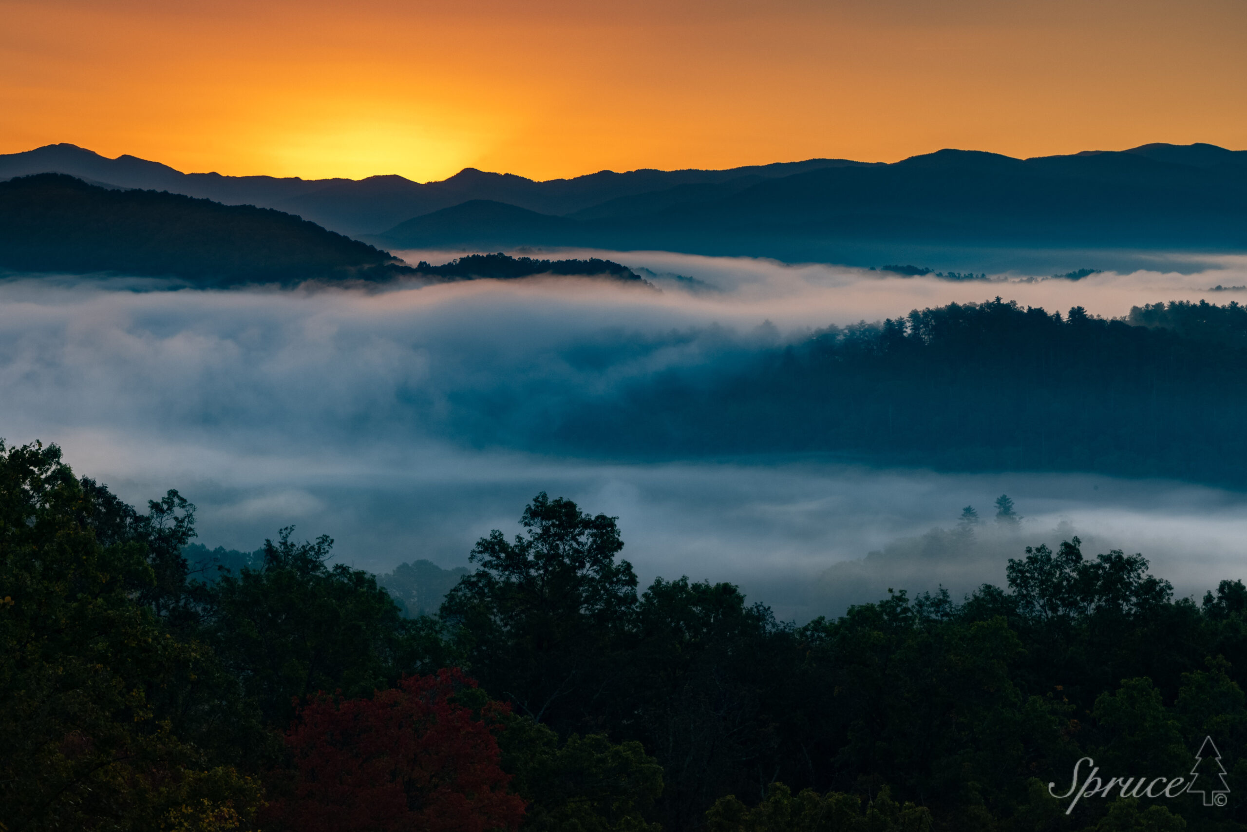 If you want to take some truly stunning photos of the Smoky Mountains, then you’ll need to get up early to catch the morning fog. After all this is how the Smoky Mountains got their name. It occurs most mornings in the valleys and rivers. Here are some tips to help you make the most of this magical time of day. First, plan your route in advance. Decide which overlooks you want to visit and map out the best route to get there. Plan on starting at higher elevation overlooks to be above the fog. Spend time and be patient as the fog changes and dissipates during the morning. After shooting from above the fog, move down to lower elevation. This is when you can look for vistas with contrasting areas of sharp detail and wispy fog.