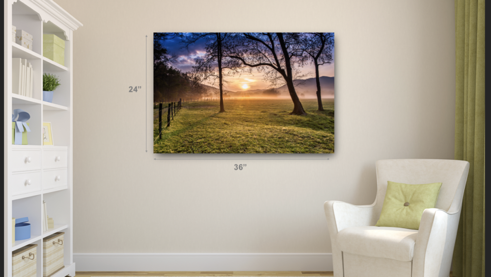 Picture this: In your bedroom, a metal print of a Cades Cove foggy morning brightening the space above your bed. Smaller float-mounted metal prints of a sleeping mother bear and her curious cubs flank each side completing the story of your Smoky Mountains.